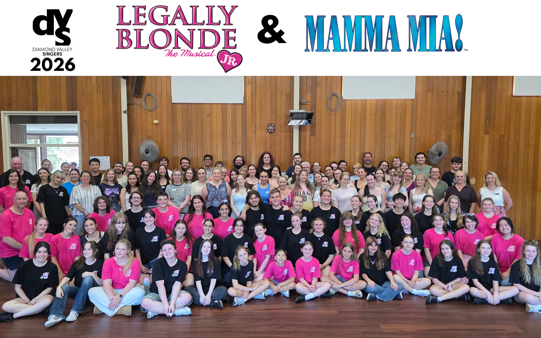 The casts of Legally Blonde JR and Mamma Mia! met together in February- DVS celebrates the coming together of our Youth and Broadway production casts and creatives